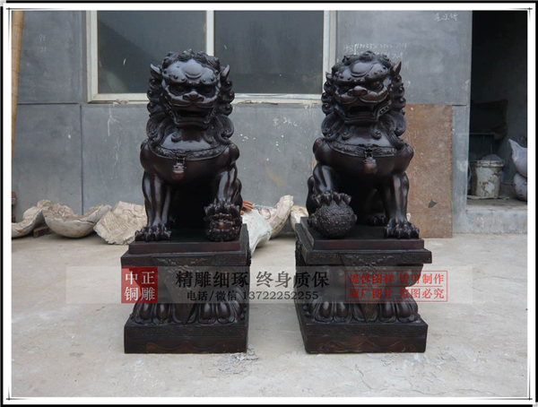 銅獅子雕塑很兇狠,煞氣較重,布局用來阻遏邪魔鬼魅入屋,因而銅獅子雕塑宜向屋外。若是擺在窗口,獅頭亦一定要向著窗外。石獅能夠放在窗沿外邊,但有必要用水泥固定,防止跌落街中。若是放在窗內亦可,但仍須用膠粘緊,以保證獅頭向外。