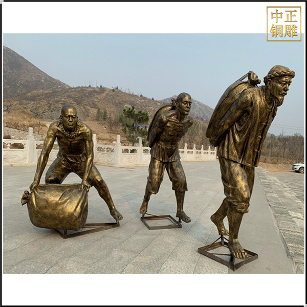 中正銅雕-戶外搬運工人物銅雕塑、戶外搬運工人物銅雕塑價格、戶外搬運工人物銅雕塑廠家,我公司集科研、開發(fā)設(shè)計、普通鑄造、一次性整體澆鑄、精密鑄造于一體。本公司技術(shù)力量雄厚,設(shè)備,不但重視中國青銅器原有的藝術(shù)風(fēng)格,還繼承了文物原有的藝術(shù)品味,在繼承和發(fā)揚古老文化的同時,更深一步為新老客戶定身量制各種銅制、鐵制工藝品等產(chǎn)品,曾多次受到寺廟長老和美術(shù)學(xué)院教授的好評。