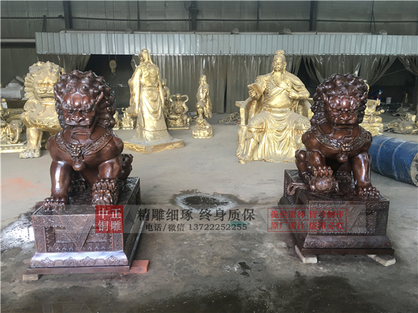 獅子:瑞獸一種,百獸之王,勇不可擋,威震四方,不但可以避邪,且可帶來祥瑞之氣,能解除多種形煞,亦加強(qiáng)官威或屋主之陽氣,如果窗口見到不利之沖克,可放一對(duì)石獅面向口可化煞,且有生權(quán)之意。凡是以口維生之行業(yè),如律師、藝員等,可在辦公室內(nèi)擺放一對(duì)聲威,有助于生財(cái)。中正銅雕-故宮銅獅子,故宮銅獅子雕塑,大型故宮銅獅子,我公司實(shí)行現(xiàn)代化企業(yè)管理,成功導(dǎo)入TPS生產(chǎn)管理系統(tǒng),形成集塑制泥塑模型、泥稿后翻制模具、翻制石膏模型、工藝師加工制作、營(yíng)銷為一體化作業(yè)的生產(chǎn)線,加上先進(jìn)的銅雕加工設(shè)備,優(yōu)秀的美術(shù)設(shè)計(jì)師,雕刻經(jīng)驗(yàn)豐富的制作人員, 造型精美,精雕細(xì)琢,深受客戶的好評(píng)。